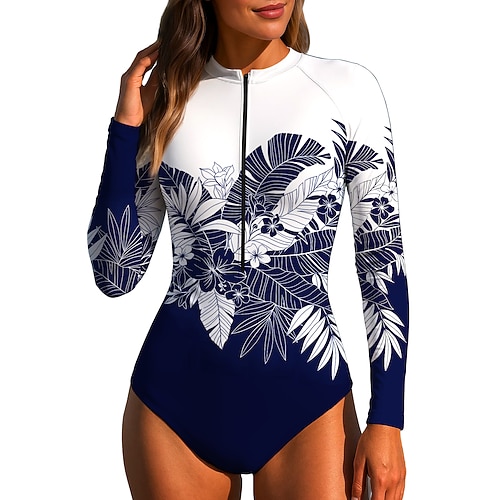 Per donna Costume da Bagno Rash Guard Floreale Stampato Asciugatura Rapida Leggero Traspirante Manica Lunga Costume da Bagno Costume da bagno 2 Pezzi Cerniera Frontale Surf Spiaggia Sport Acquatici