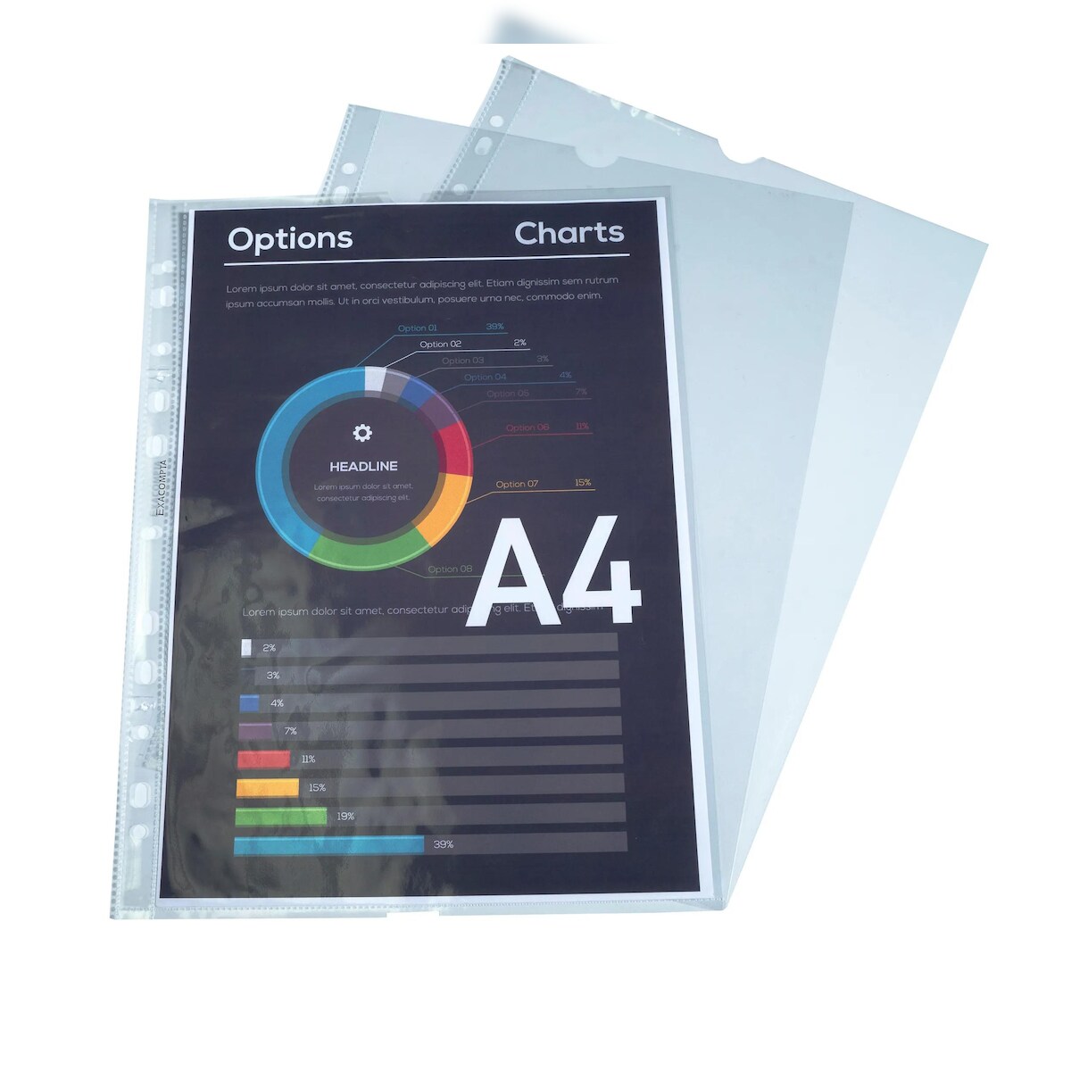 Exacompta 5200E 10x Packung mit 100 Prospekthüllen glatt und gelocht aus PP 60µ, DIN A4 - Kristall
