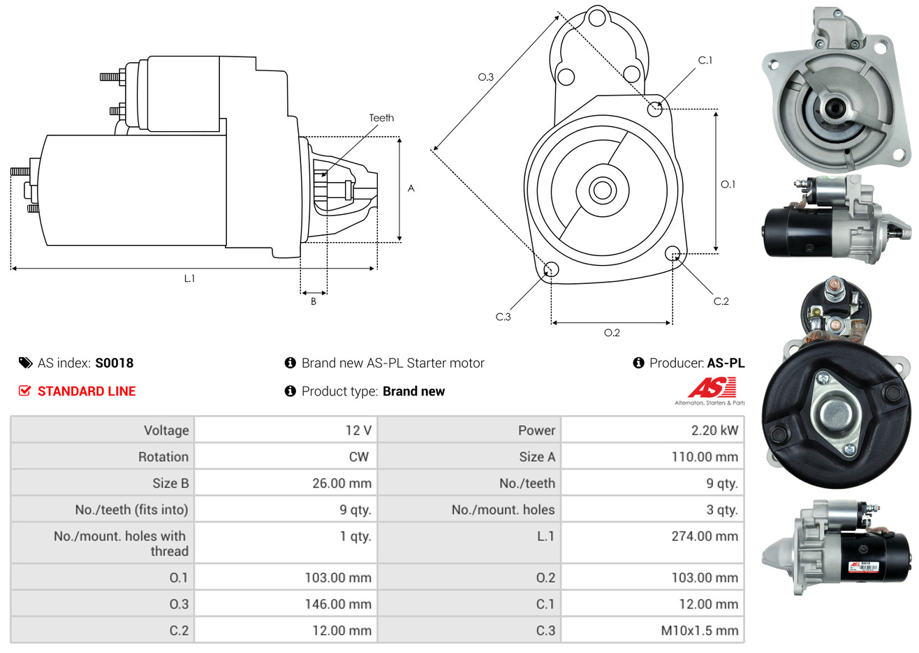 AS-PL Starter S3040 12V für DAF MERCEDES-BENZ CHRYSLER SSANGYONG A6611513901 A0041517101 003151500180