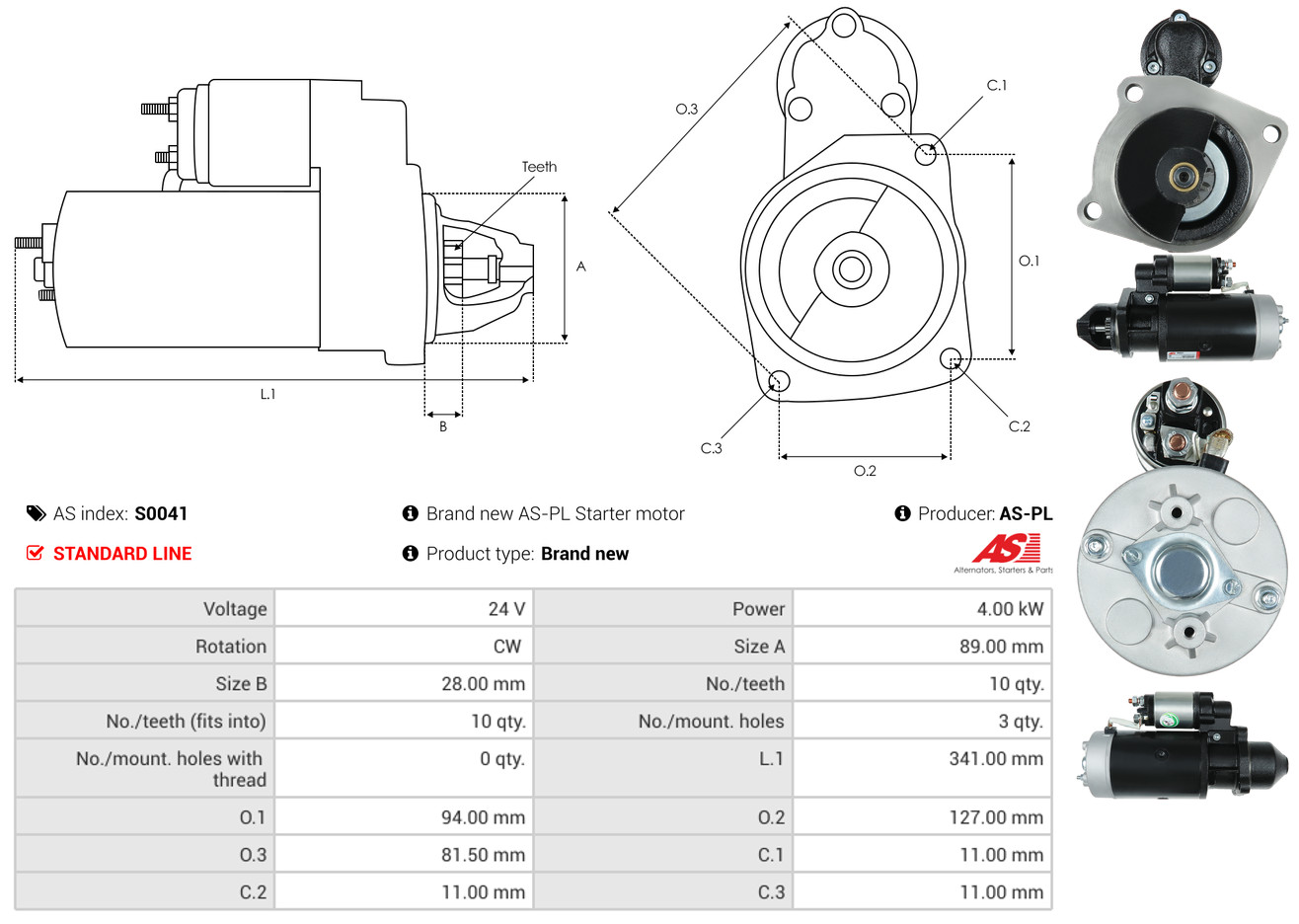 AS-PL Starter S0041 Universal 24V für DAF MAN 51.26201-7140 51262019119 51262017215
