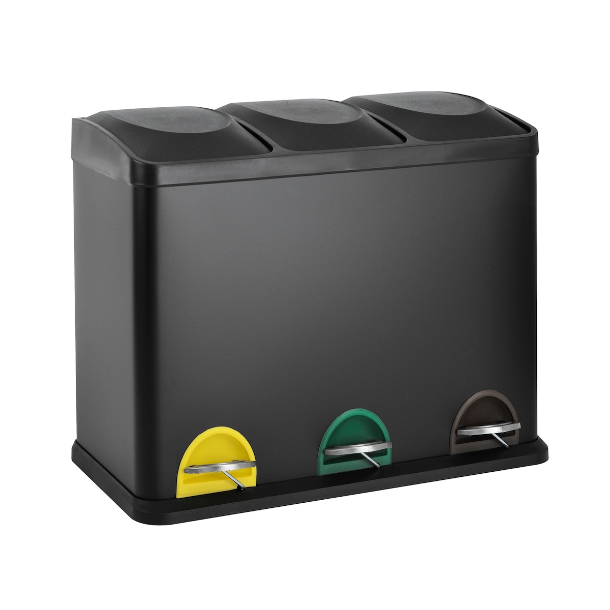 SVITA TC3X15 Kücheneimer 45L Mülleimer Trennsystem Treteimer Abfalleimer Schwarz