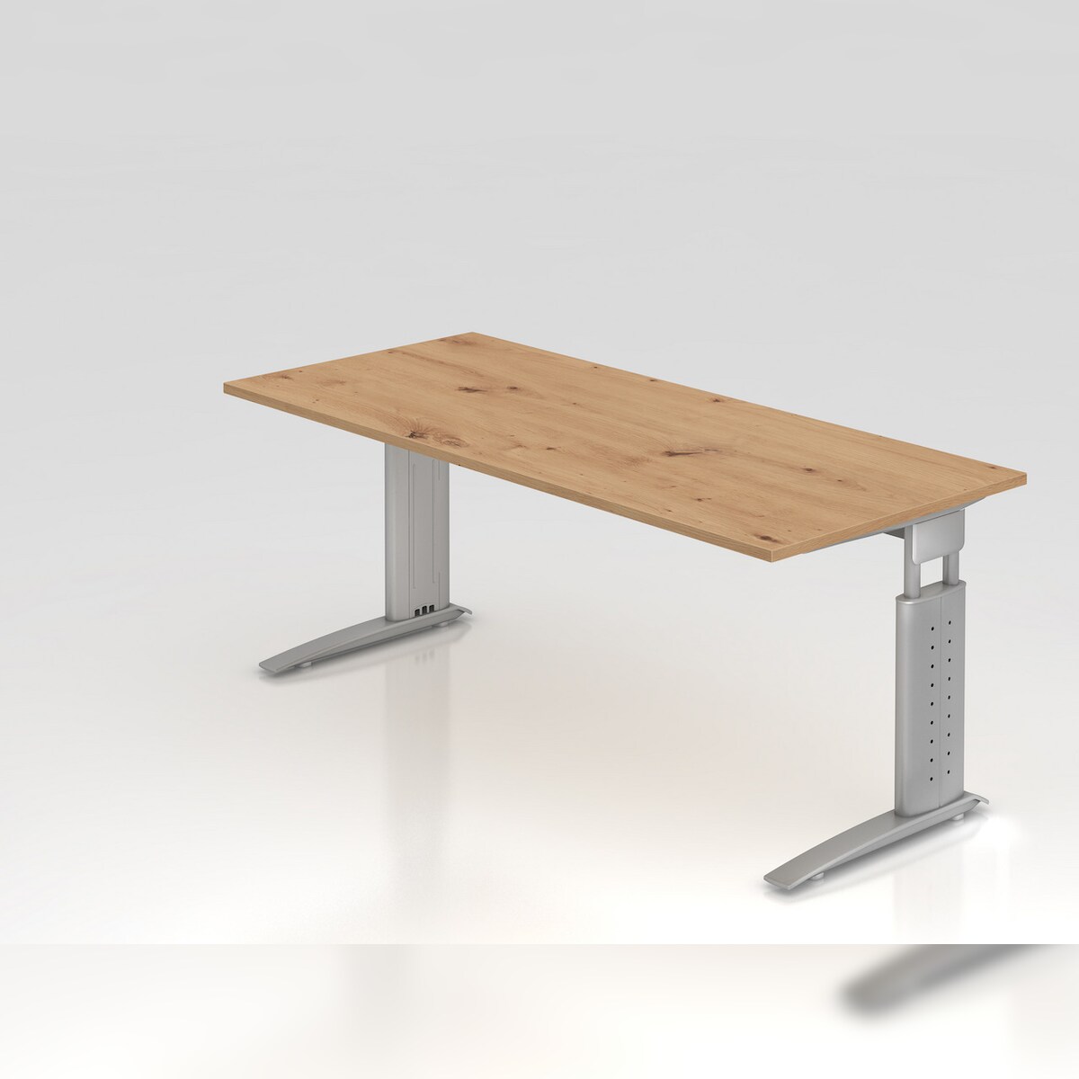 PROREGAL Schreibtisch Mika | Eiche | Graues Gestell poliert | BxT 200x100cm | Arbeitshöhe 65-85cm | höhenjustierbar, 1cm Raster | C-Fuß-Gestell