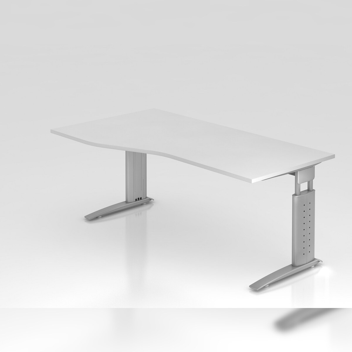 PROREGAL Schreibtisch Mauri | Weiß | Silber Gestell | BxT 180x80/100cm | Arbeitshöhe 68-86cm | höhenjustierbar, 2cm Raster | C-Fuß-Gestell