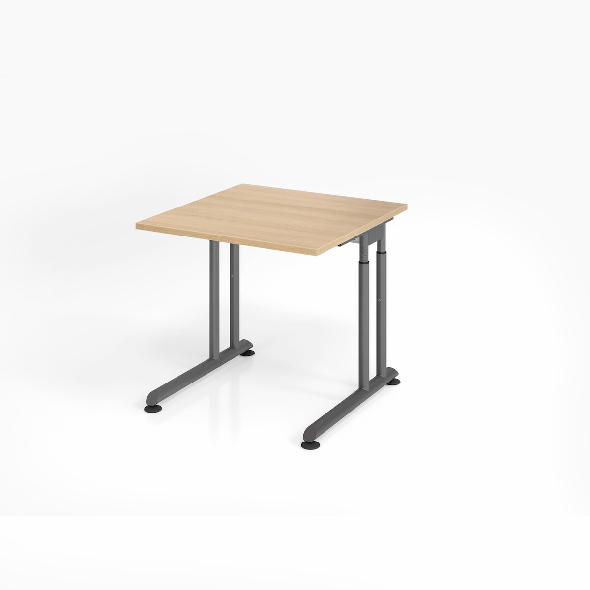 PROREGAL Schreibtisch Mika | Asteiche | Weißes Gestell poliert | BxT 80x80cm | Arbeitshöhe 65-85cm | höhenjustierbar, 1cm Raster | C-Fuß-Gestell