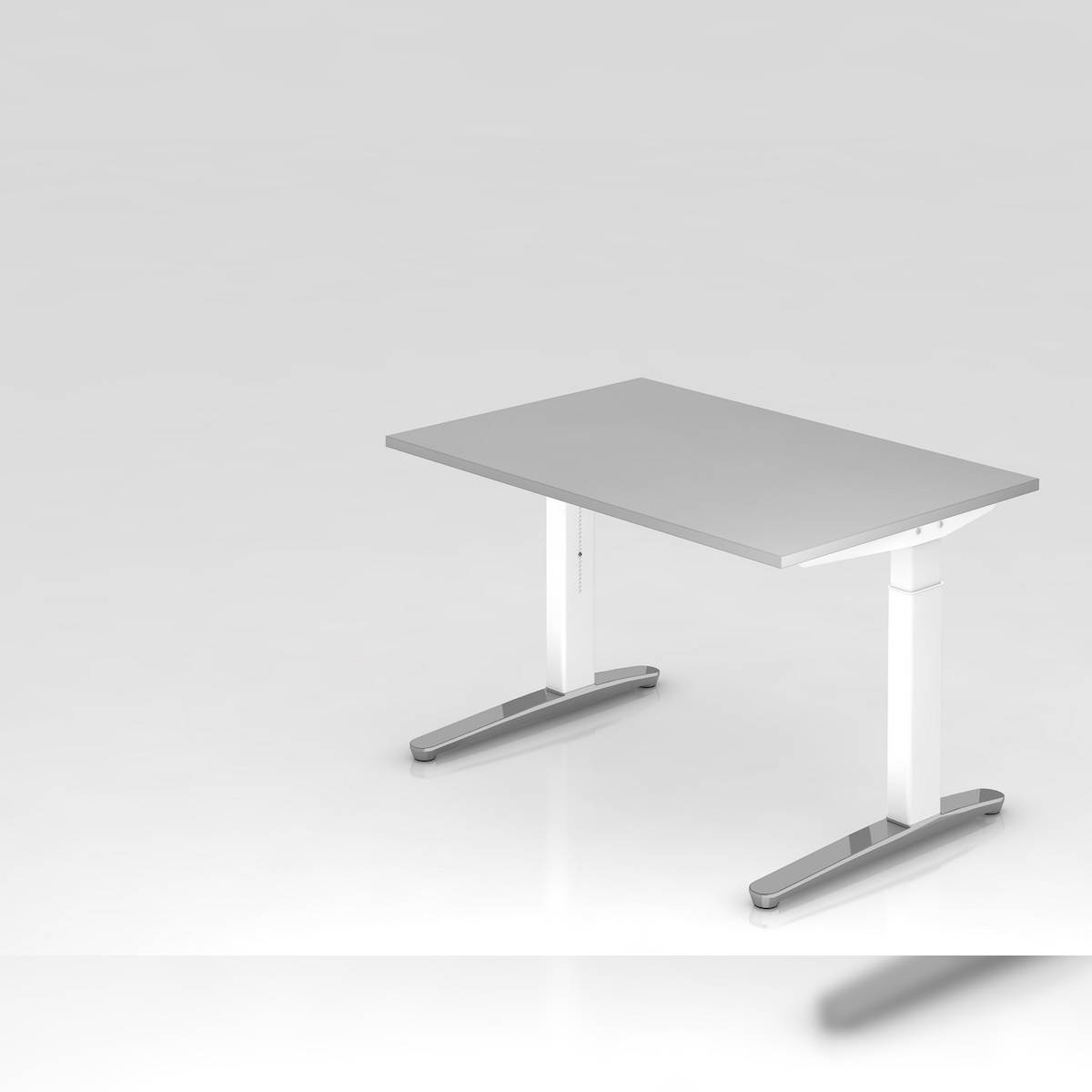 PROREGAL Schreibtisch Mika | Weiß | Silber Gestell | BxT 120x80cm | Arbeitshöhe 65-85cm | höhenjustierbar, 1cm Raster | C-Fuß-Gestell | Bürotisch