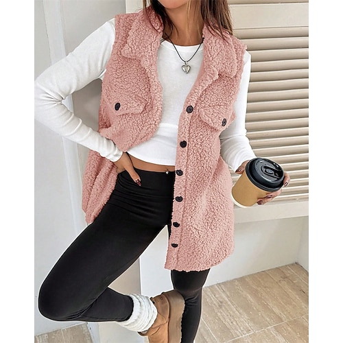 Per donna Cappotto Invernale Gilet in pile Gilet Caldo Confortevole Bottoni Moda Casual Tinta unica Vacanza Abbigliamento quotidiano Uscire Weekend Regolare Con Cappuccio Vestibilità regolare Senza
