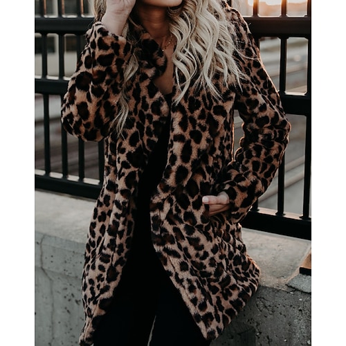 Per donna Cappotto Invernale Cappotto in Pelliccia Sintetica Caldo Confortevole Tasca Casual Leopardo Vacanza Abbigliamento quotidiano Uscire Weekend Lungo Collo ripiegato Vestibilità regolare Manica