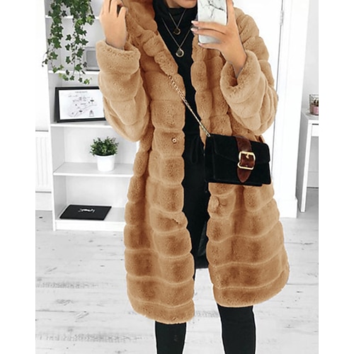 Per donna Cappotto Teddy Cappotto Cappotto in Pelliccia Sintetica Caldo Confortevole Tasca Attivo Casual Semplice Vacanza Abbigliamento quotidiano Weekend Lungo Con Cappuccio Vestibilità regolare