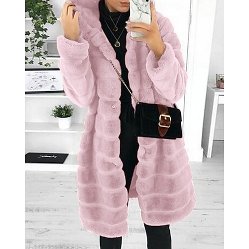 Per donna Cappotto Invernale Giacca Piumino Cappotto in Pelliccia Sintetica Caldo Confortevole Cerniera Tasca Casual Semplice Abbigliamento quotidiano Uscire Weekend Regolare Con Cappuccio