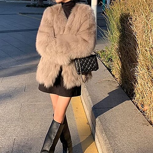 Per donna Cappotto Invernale Cappotto in Pelliccia Sintetica Caldo Confortevole Tasca Strappati Elegante Semplice Vacanza Abbigliamento quotidiano Weekend Regolare Collo ripiegato Vestibilità regolare