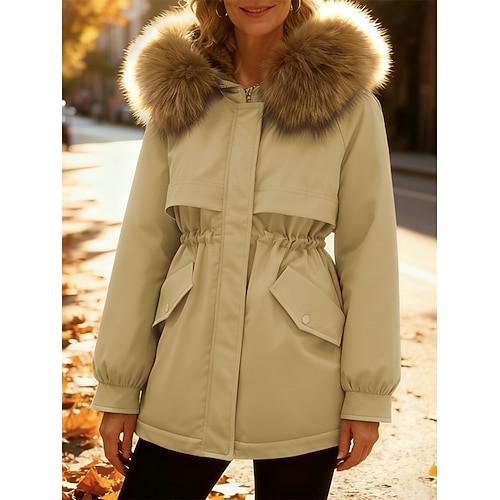 Per donna Cappotto Invernale Parka Caldo Confortevole Bordo in pelliccia Cerniera Tasca Casual Semplice All'aperto Vacanza Uscire Weekend Lungo Con Cappuccio Vestibilità regolare Manica Lunga