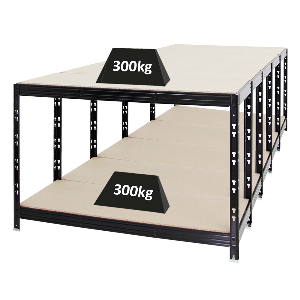 PROREGAL Mega Deal | 5x Werkbank Tiger | 300 kg pro Fachboden | HxBxT 90x140x60 cm | Schwarz | Arbeitstisch Werkstatttisch