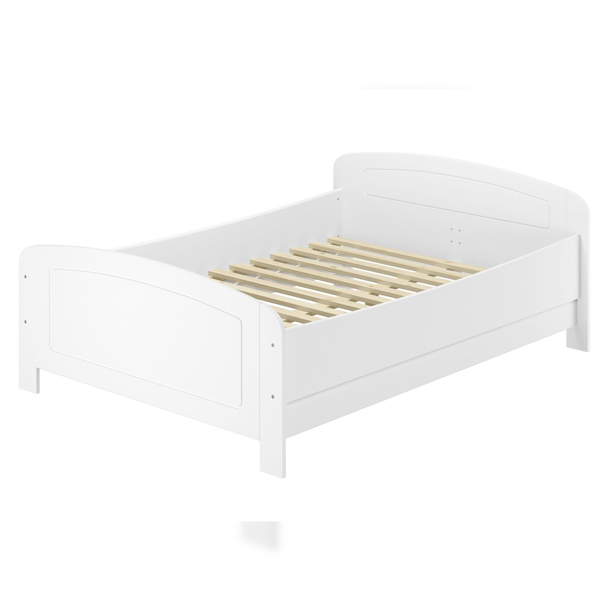 GOODproduct Massivholzbett "Madrid, Landhausstil, hohe Belastbarkeit" Breite/Belastbarkeit 180cm/220 KG, 160cm/200 KG, 90cm/=120 KG, mit Rollrost, aus massivem Kiefernholz, Kassettenoptik weiß, kirschbaumfarben Liegefläche Länge B: 200cm x 180cm, ohne Mat