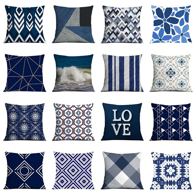 Dark Blue Geometric Pattern Auto Supplies Office Living Room Sofa Cushion Pillowcase Home Decor