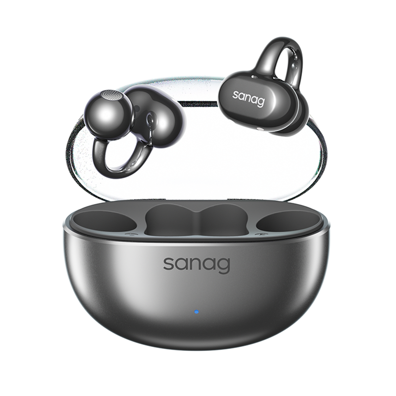 Casque Bluetooth Sans Fil Sanag S6S Nova à Conduction Osseuse avec Clip Auriculaire – Design Ouvert Haute Qualité pour le Sport et la Course, Réduction de Bruit et Technologie IA