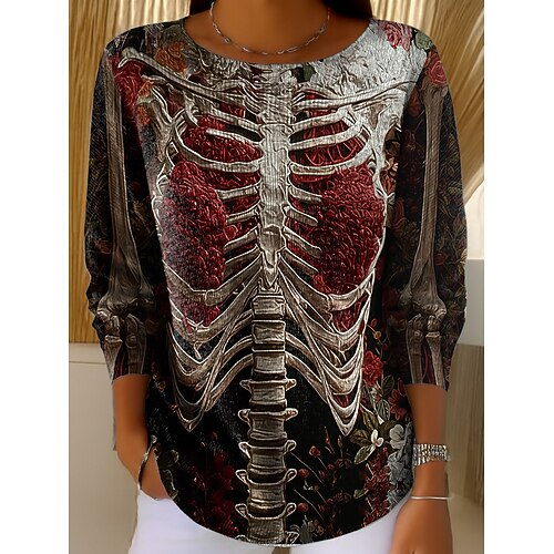 T Shirt da donna Scheletro Teschi Grafica Scheletro Moda Vintage Elegante Manica Lunga Collo Girotondo Magliette Regolari Giorno del Weekend Stampa Giallo Rosa Viola Verde Estate Primavera Autunno