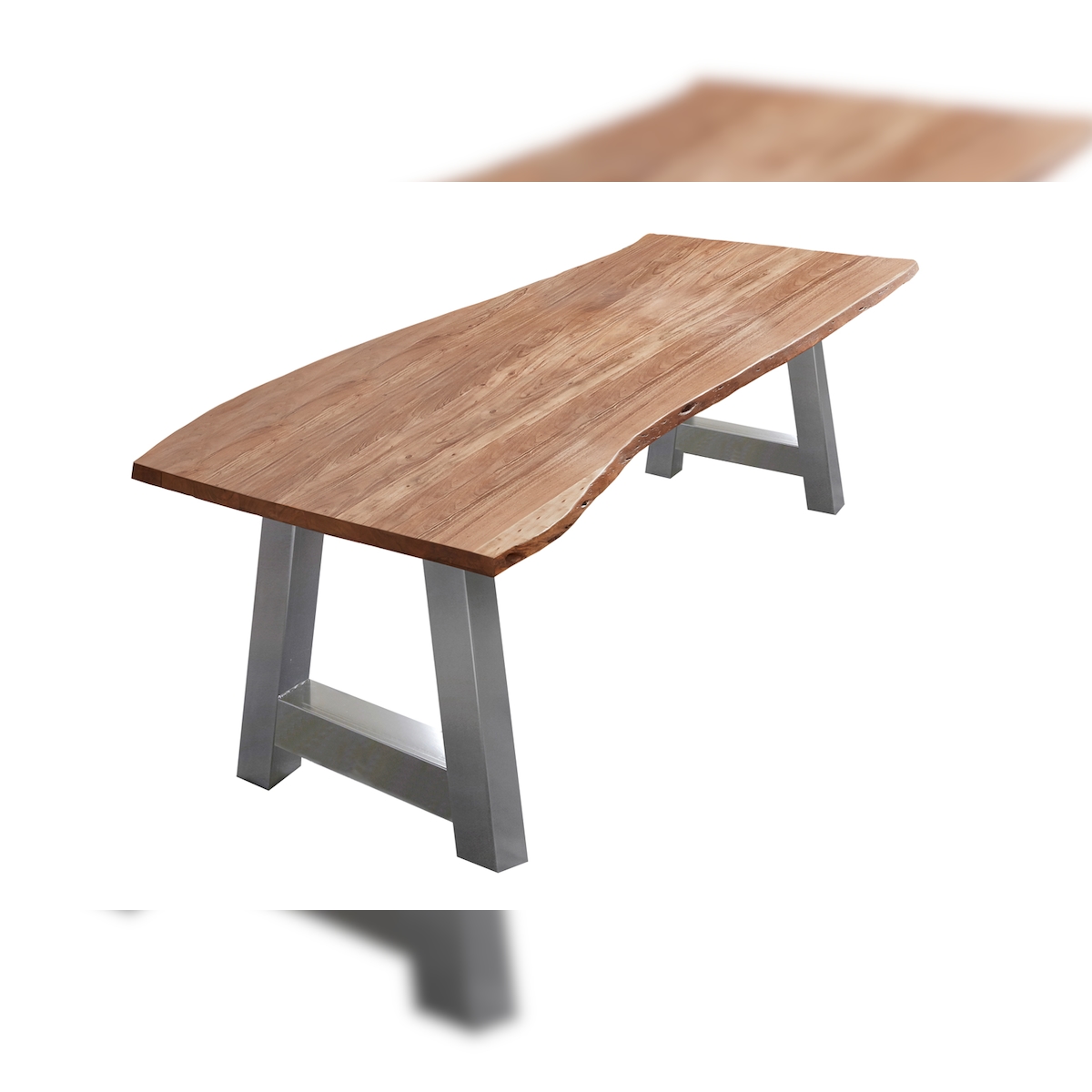 SAM® Esstisch Baumkante massiv Akazie Natur 240 x 100 A-Gestell silber ATHEN