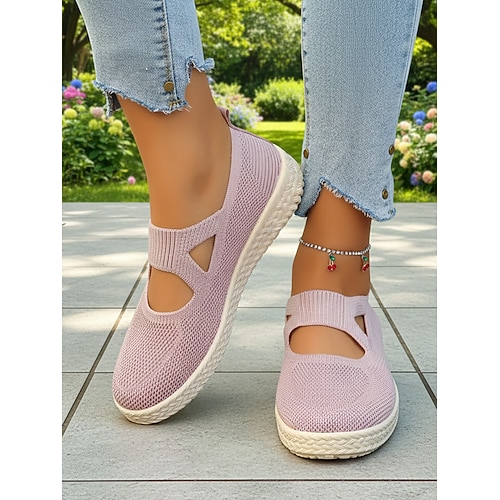 Sneakers slip-on leggere in maglia rosa da donna, traspiranti, sportive, per yoga, palestra, viaggi e comfort quotidiano