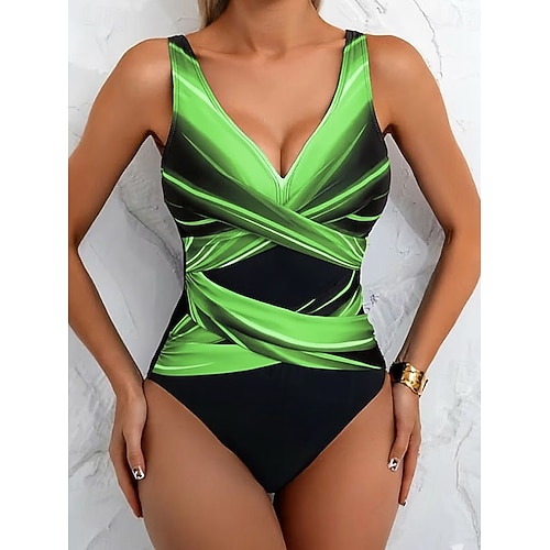 Costume da bagno intero da donna snellente arricciato colorblock slip vacanza attiva scollo a V senza maniche