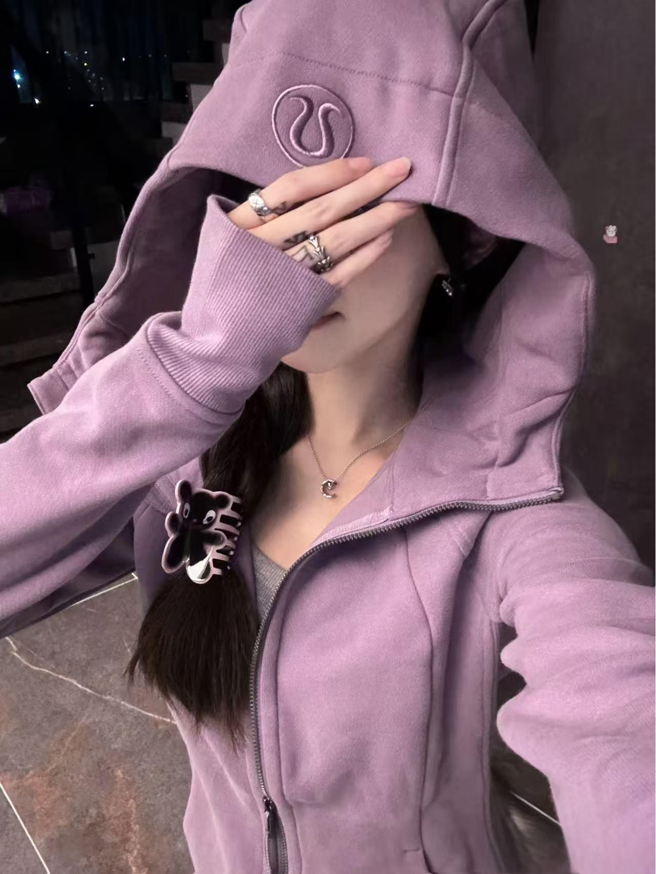 Lulu Original Broderad Smal Scuba Jacka - Varm Yoga Casual Sporttopp med Fleecefoder cm