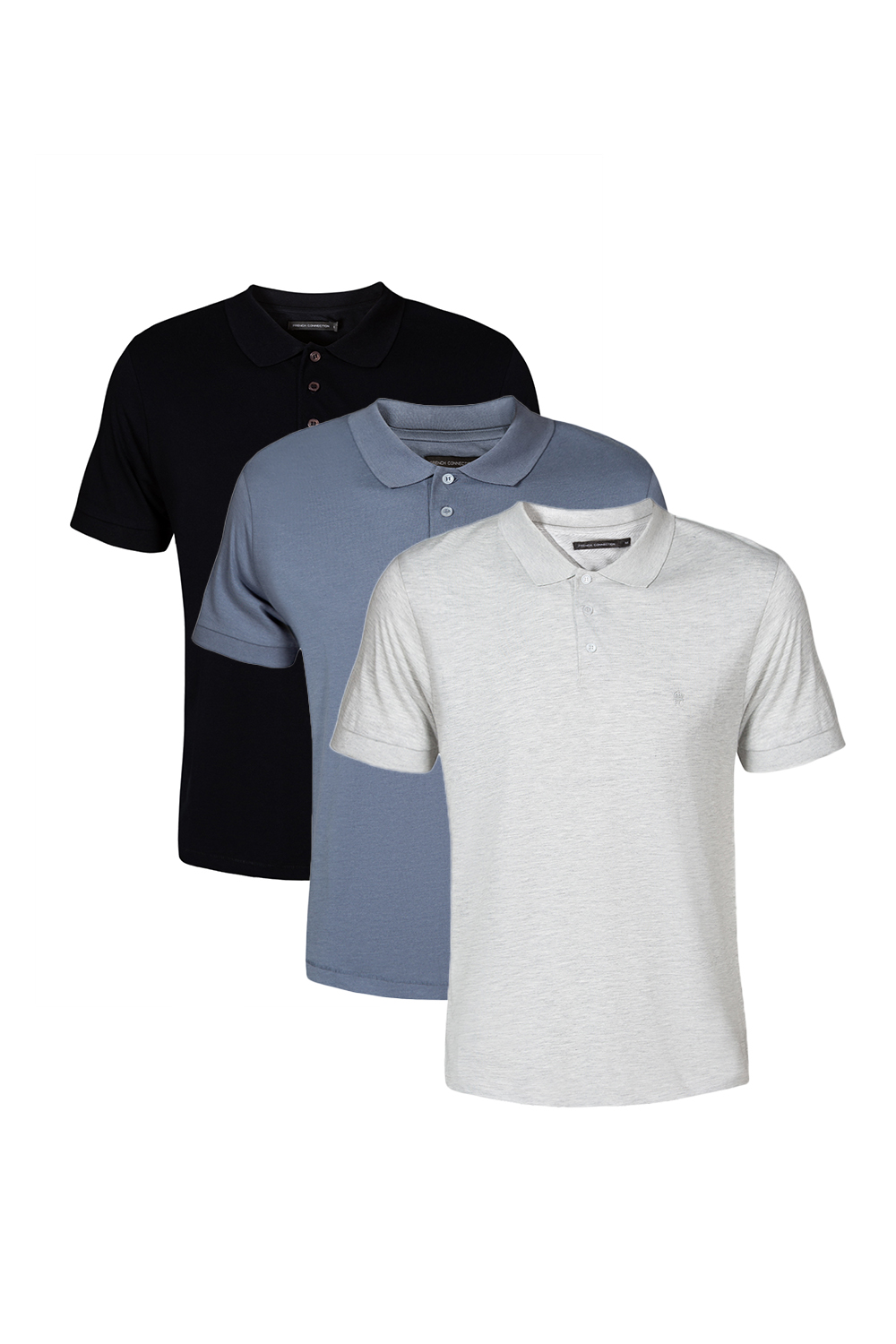 French Connection Mens 3 Pack Cotton Short Sleeve Polo Shirts - Blue - Size Small | French Connection Sale | Discount Designer Brands