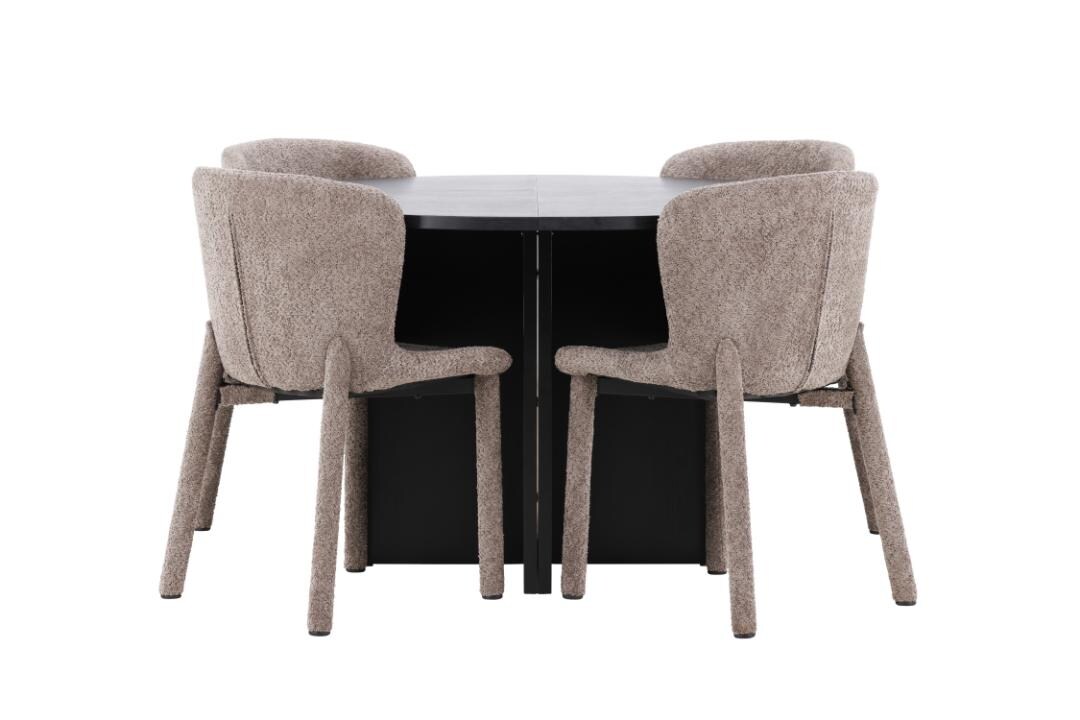 Essgruppe SALESFEVER "Eleganter Tisch inkl. Stühle", weiß (weiß, natur, grau, natur), Samtvelours, Essgruppe 5 tlg. 180x90cm, MDF, Massivholz, Polyester, Sitzmöbel-Sets, Essgruppe, 5-teilige Samtverlours-Sitzgruppe, drehbare Stühle, 180cm Tischbreite