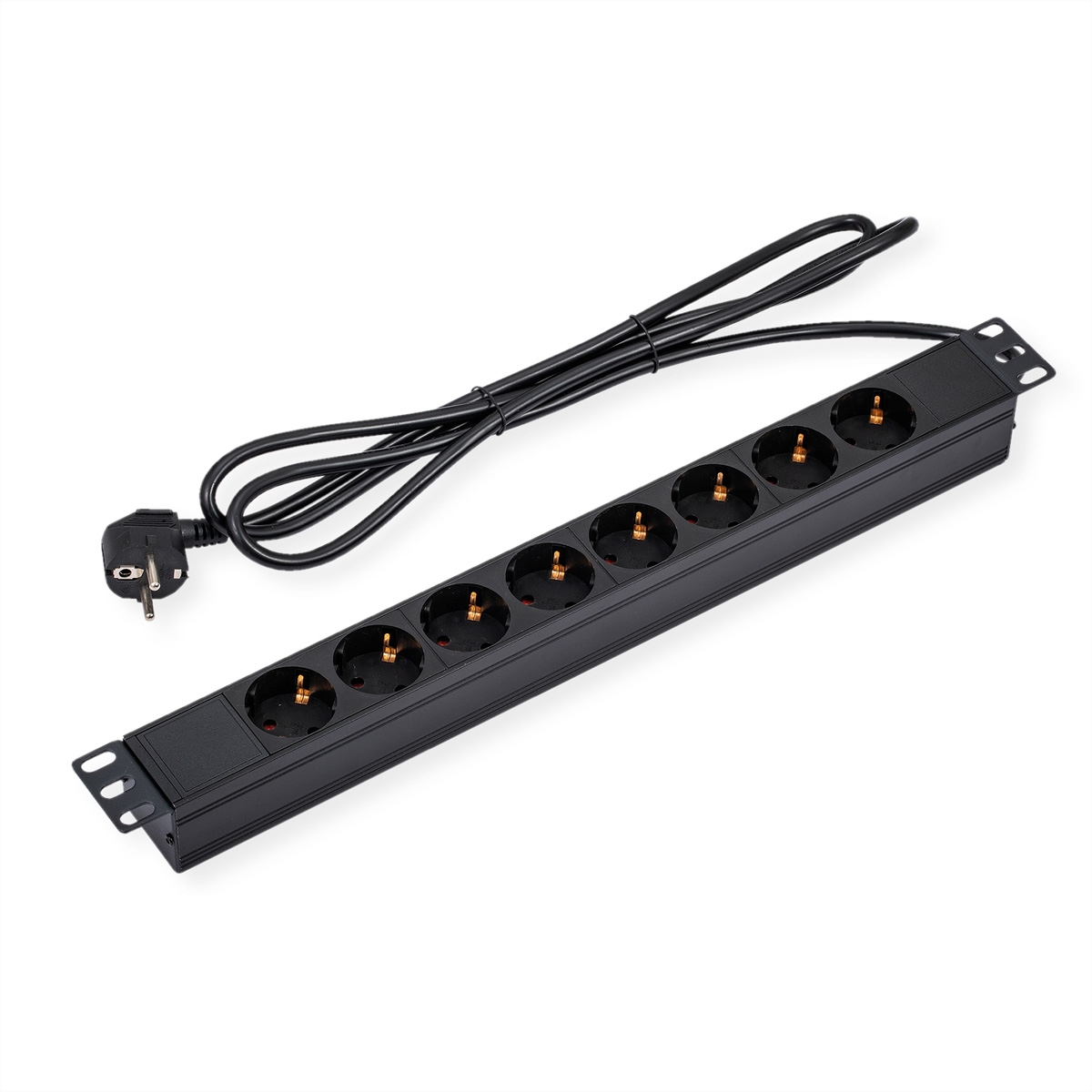 VALUE 19-Zoll-Steckdosenleiste 8fach, 1 HE, Schutzkontakt-Stecker, 1,8 m