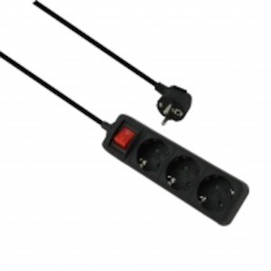 Helos Steckdosenleiste CLASSIC, 3-fach, schwarz, 3,0m, mit Schalter