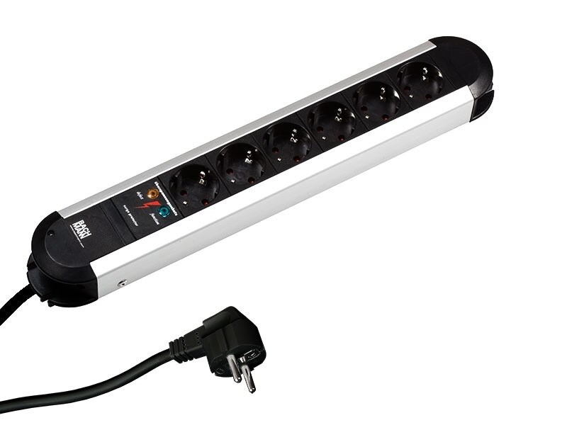 Bachmann Steckdosenleiste PRIMO ALU ÜSS, 6-fach, schwarz, 2,0m, ohne Schalter