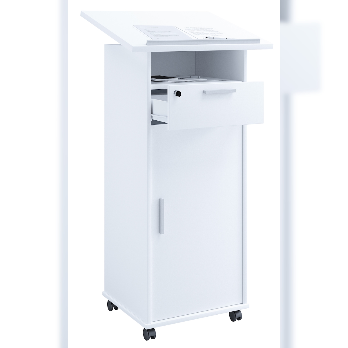 Stehpult VCM "Holz Stehpult Rednerpult Stehtisch Rollen Komil", weiß, B:56cm T:41cm, Tische