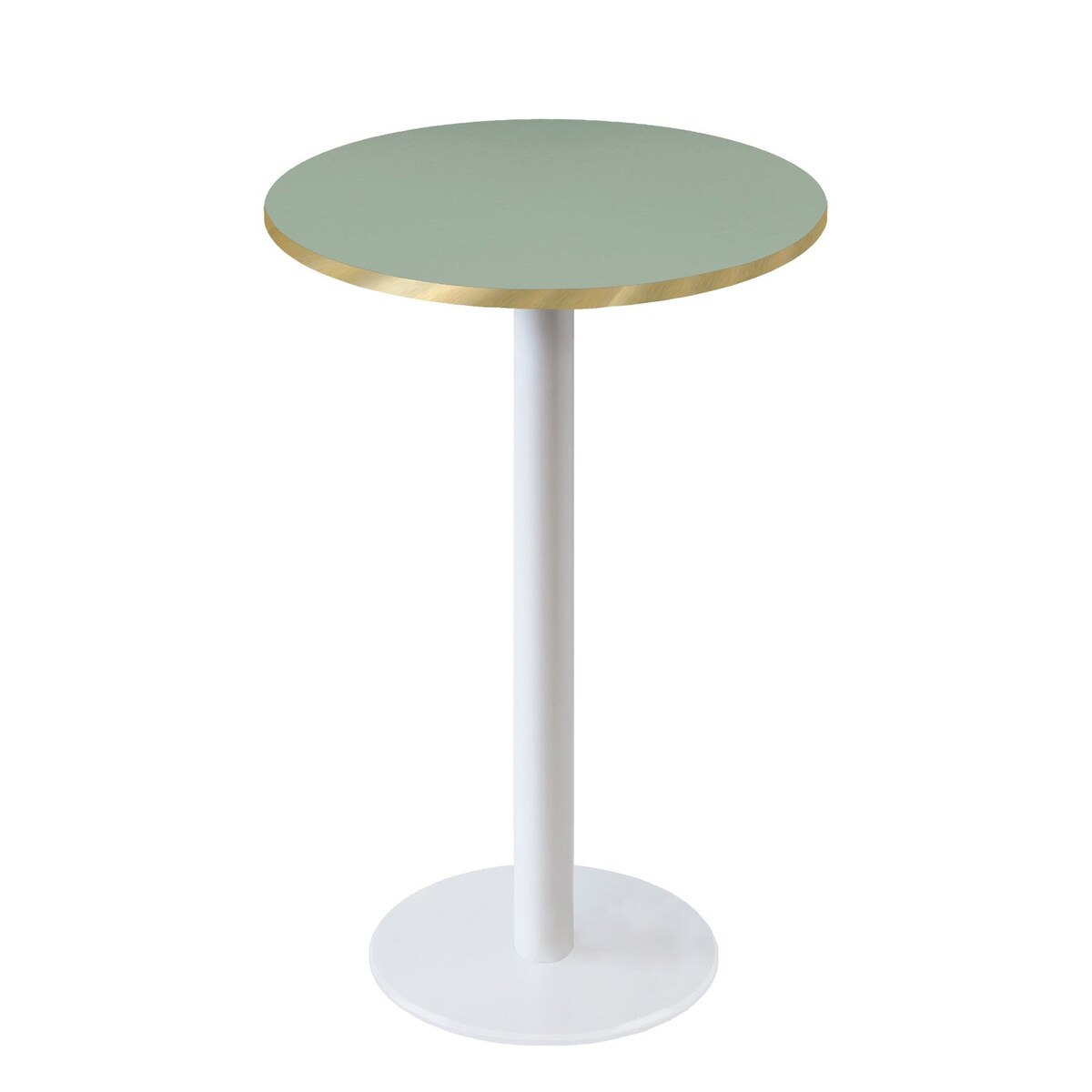 RestooTab - Stehtisch Rome weiß Ø60 Dekor grün celadon Kanten messingfarben