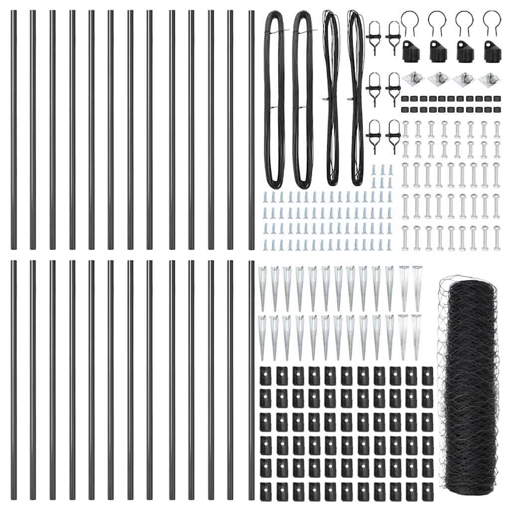 vidaXL Zaunpfosten Grau 25 x 0,5 m (13 mm Maschen) Stahl