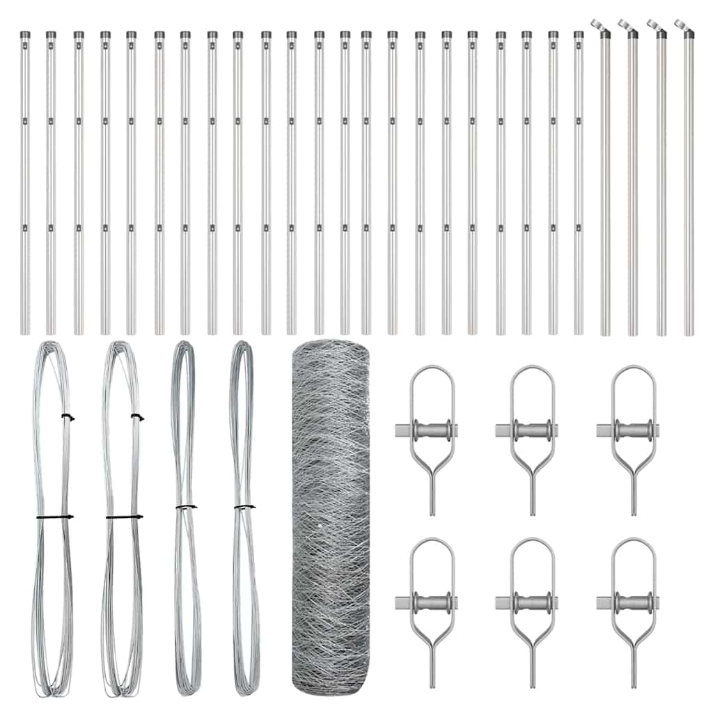 vidaXL Zaunpfosten Silber 25 x 0,5 m (13 mm Maschen) Stahl