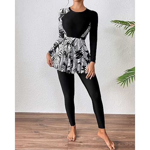 Per donna Standard Top sottomuta Costume da surf intero Costume da bagno Floreale Tropicale Color-blocking Protezione Solare UV UPF50 Ultra Leggero (UL) Manica Lunga Costume da Bagno Top sottomuta