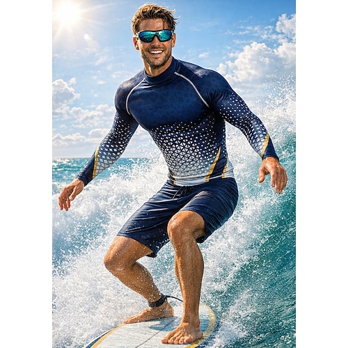 Per uomo Top sottomuta Maglia da nuoto Patchwork UPF50 Asciugatura Rapida Leggero Manica Lunga Top sottomuta costume da bagno Surf Spiaggia Sport Acquatici Estate