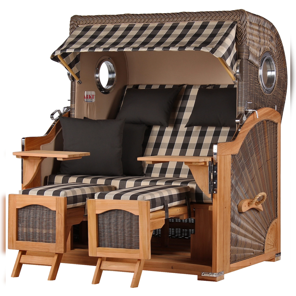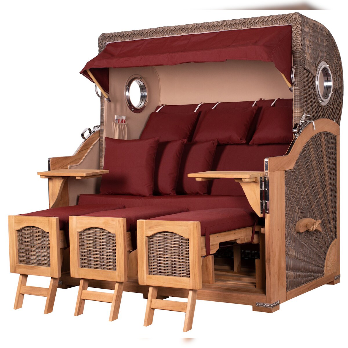 Mr. Deko Strandkorb - bene living - Ammersee Grande XXL Teak Bullauge - PE grau - Modell 550 - 3-Sitzer inkl. Liftersystem