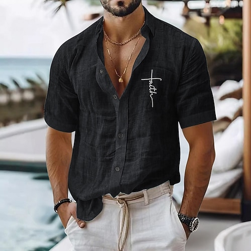 Per uomo Camicia di lino Camicia casual Camicia in cotone e lino Camicia con Bottoni Fede Vacanza Abbigliamento quotidiano Nero Bianco Verde chiaro Rosa Manica Corta Bavero Tutte le stagioni