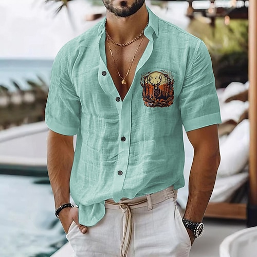 Per uomo Camicia di lino Camicia casual Camicia in cotone e lino Camicia con Bottoni Con Motivo Animale Vacanza Abbigliamento quotidiano Nero Bianco Verde chiaro Rosa Manica Corta Bavero Tutte le
