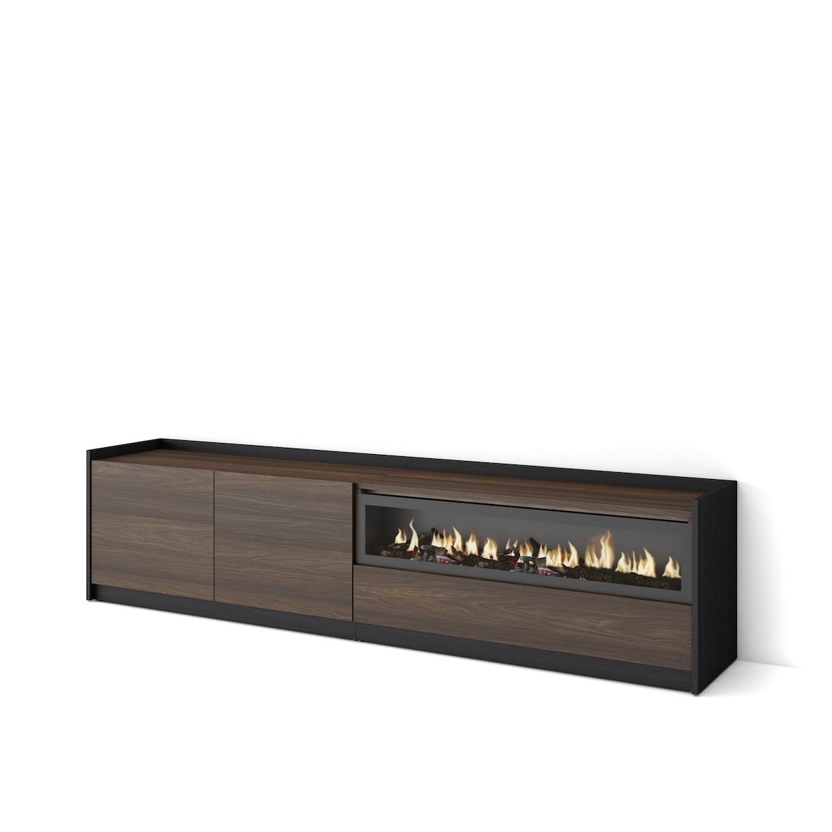 SKRAUT HOME TV-Schrank, Lowboard, für Wohnzimmer und Esszimmer, 310x50x37 cm, Für TV-Geräte bis zu 80", Elektrokamin., Moderner Stil, Schwarz Eiche