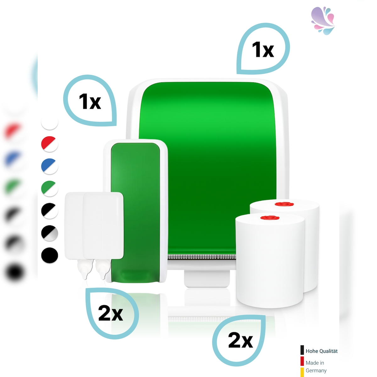 Blanc HYGIENIC KOMPLETT-SET Waschraum MANUELL: Handtuchrollenspender AUTOCUT + 2 TAD Handtuchrollen + Schaumseifenspender MANUELL+ 2 Kartuschen