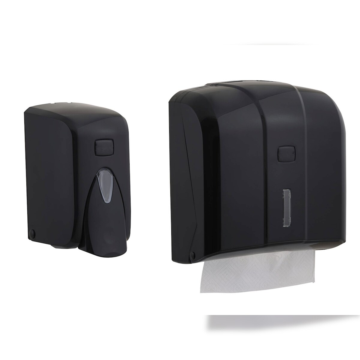 CleanSV® Via Set Schwarz Seifenspender 500 ml. und Papierhandtuchspender