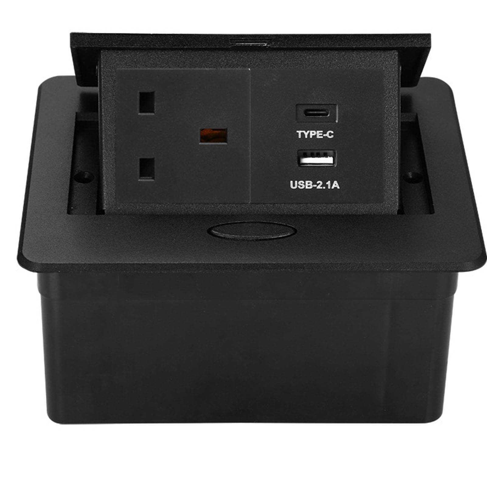 Innfelt stikkontakt 3-pins uttak Type C og USB-port Skrivebord Opp Strømuttaksboks