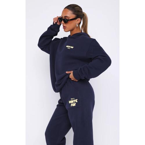White Fox Dames Lange Mouw Hoodie Sweatshirt en Joggingbroek Set Stijlvolle Tweedeelig Trainingspak voor Herfst Winter & Lente Marineblauw cm