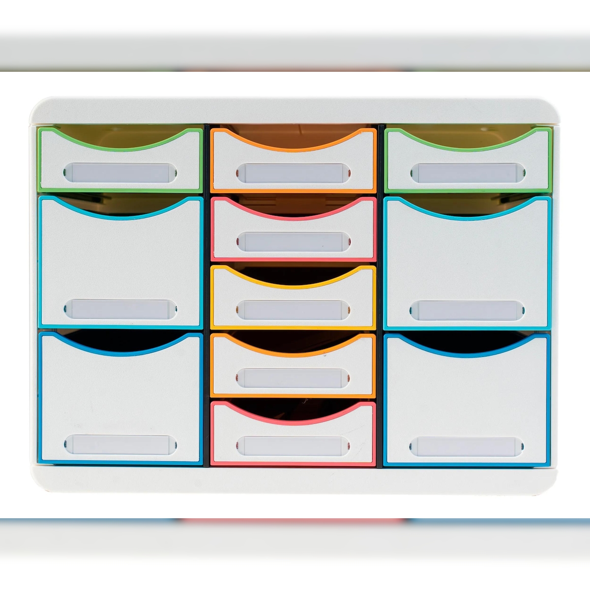 Exacompta 313913D BLACK & WHITE OFFICE, Schubladenbox mit 11 Schubfächern, STORE BOX MULTI, 270x355x271 mm - Weiss/Harlekin