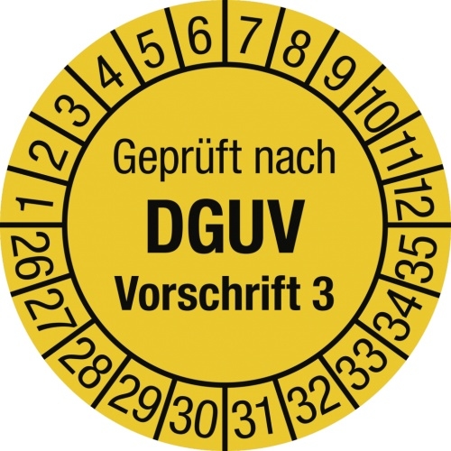 Dreifke® Prüfplakette Geprüft nach DGUV Vorsch. 3, 2026-2035, Folie, Ø 30 mm, 10 Stück/Bogen
