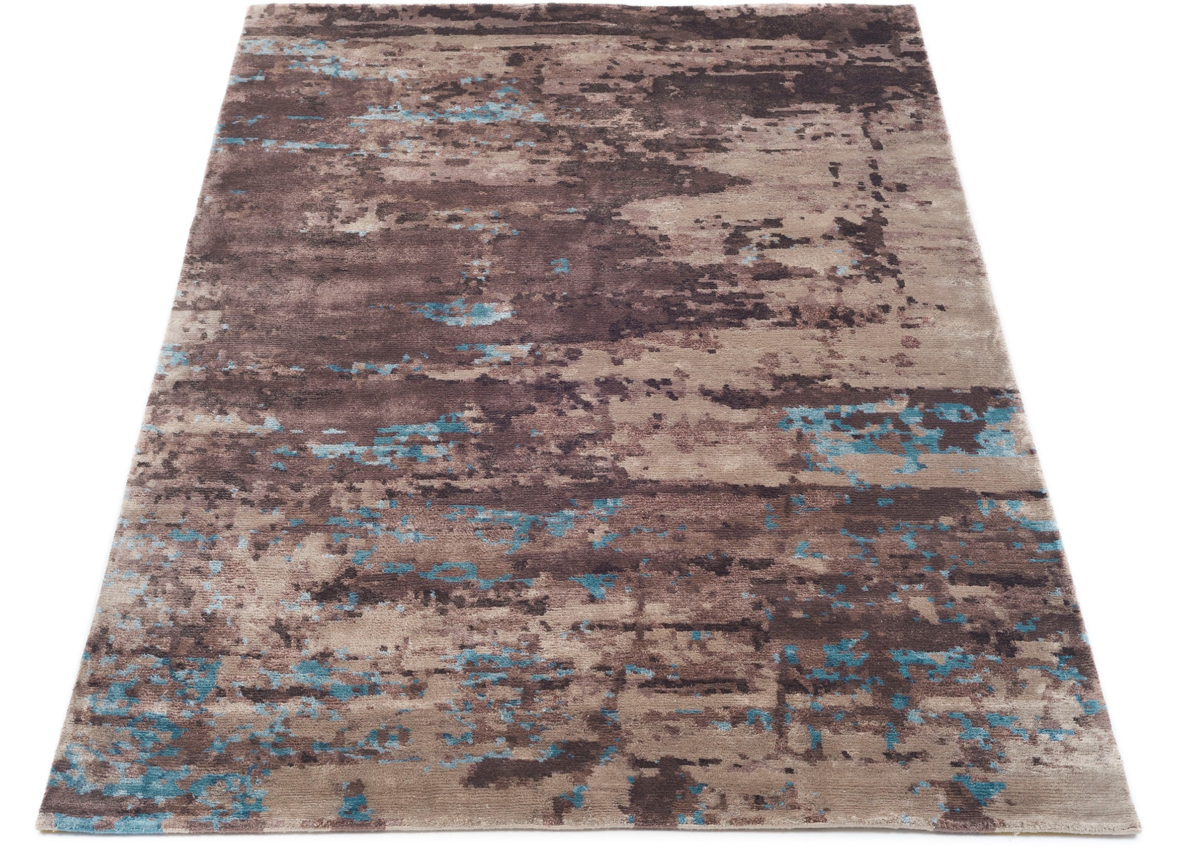Teppich MUSTERRING "ANGELES PILANO", blau (braun, beige, blau), B:70cm H:10mm L:140cm, Viskose, Teppiche, exlcusive MUSTERRING DELUXE COLLECTION, Bambus-Viskose feine Knüpfung
