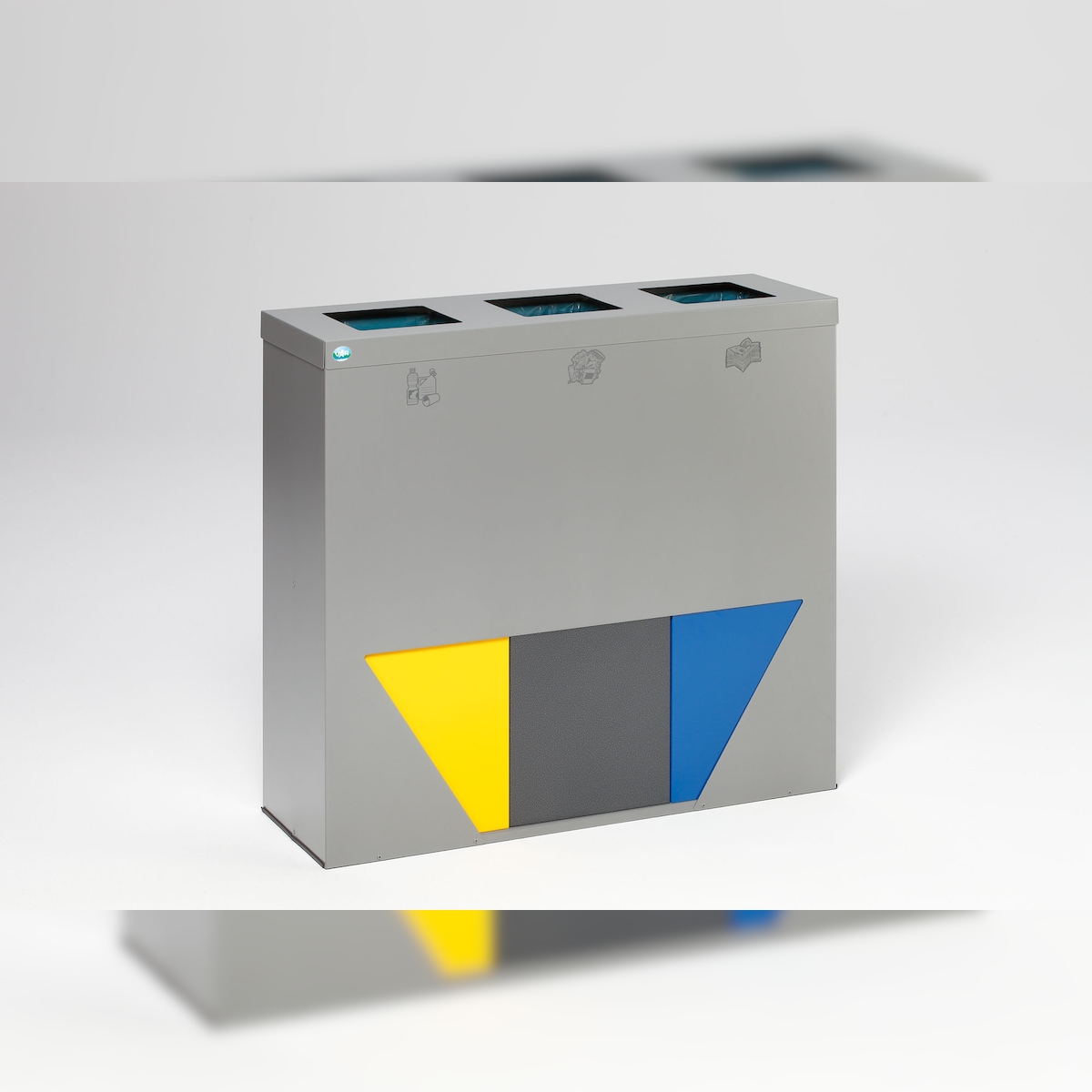 PROREGAL Robuste Wertstoffsammlstation 3 Einsätzen | 89 Liter je Behälter, HxBxT 93,3x102,7x33cm | Verzinkter Stahl | Silber | Mülleimer Abfalleimer
