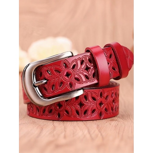 Cintura da donna in vera pelle – design floreale vintage intagliato con fibbia in metallo, accessorio retrò per jeans, abiti e outfit casual