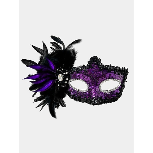 Maschera da donna in piume di paillettes bordeaux con finiture in strass, accessorio per costumi in stile gotico veneziano per feste di Halloween e balli in maschera