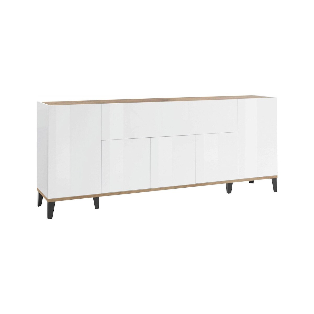 Dmora Kommode Vittorio, Küchen-Sideboard mit 6 Türen, Wohnzimmer-Buffet, 100 % Made in Italy, cm 200x40h82, glänzend weiß und Ahorn